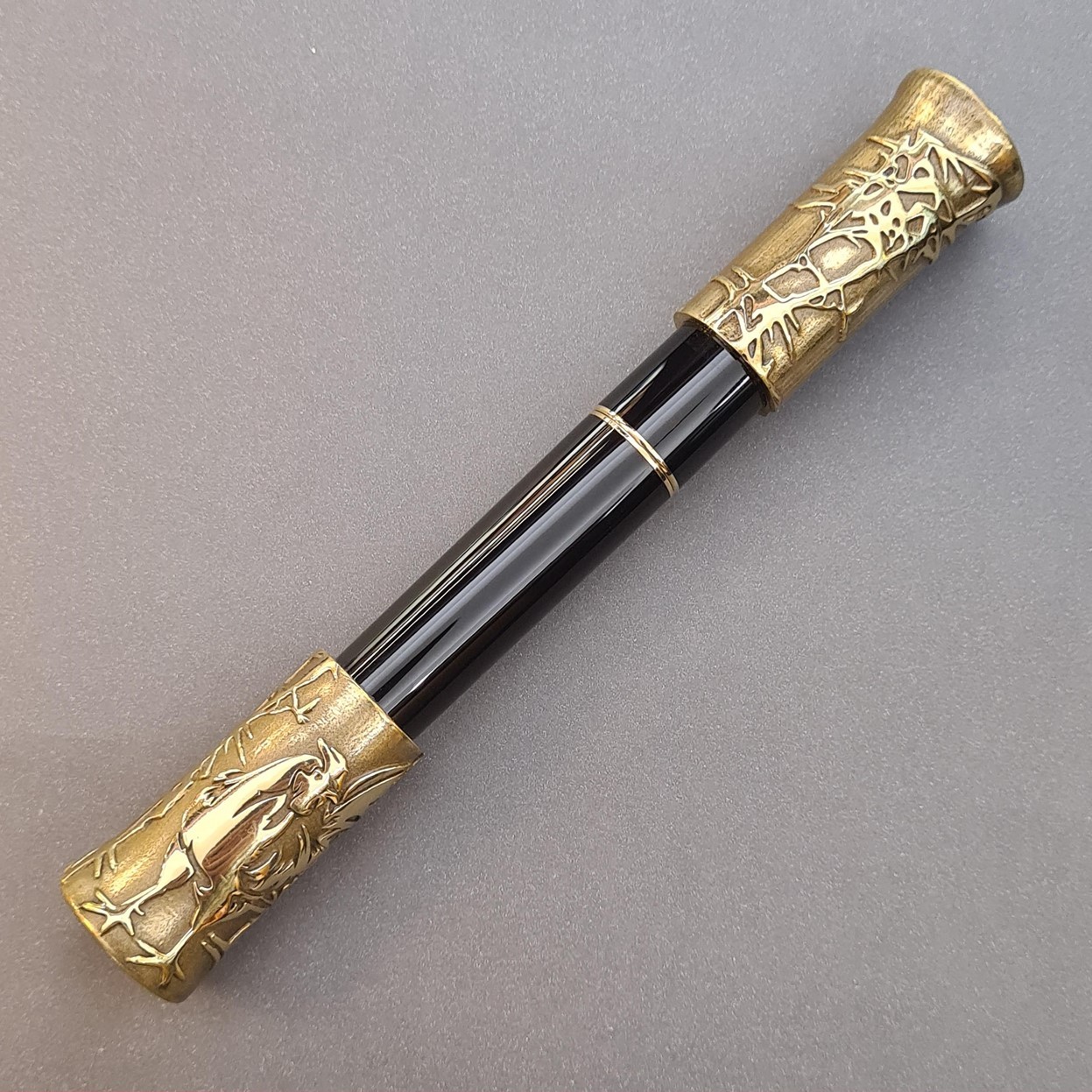 Les instruments d'écriture, Roller, Les instruments d’écriture d'occasions et vintage, RollerEn s'inspirant de notre édition limitée de l'année - Conquest of Wild West, la légende historique du Cowboy américain de la fin du 19e siècle est extraordinaire. L'image du cow-boy, en plus d'être fortement romancée, est une image idéalisée représentatif de la tradition de la chevalerie. Il est la représentation idéale de la masculinité. La Maison Dupont en collaboration avec 2Saints sculpte à la main l'étonnante somptuosité des pistolets de cow-boy en instruments d'écriture et briquets sculptés à la main. Capuchon : Fabriqué à partir de bronze avec des finitions rhodiées Corps en laque noir Bas du corps Fabriqué en bronze avec des finitions en or jaune Section roller, adaptable feutre. Edition limité N°001/288 pièces ou 007/288 ou 000/288 Modèle jamais utilisé, neuf. Ecrins et documents d’origine3200€ 2667€TVA -