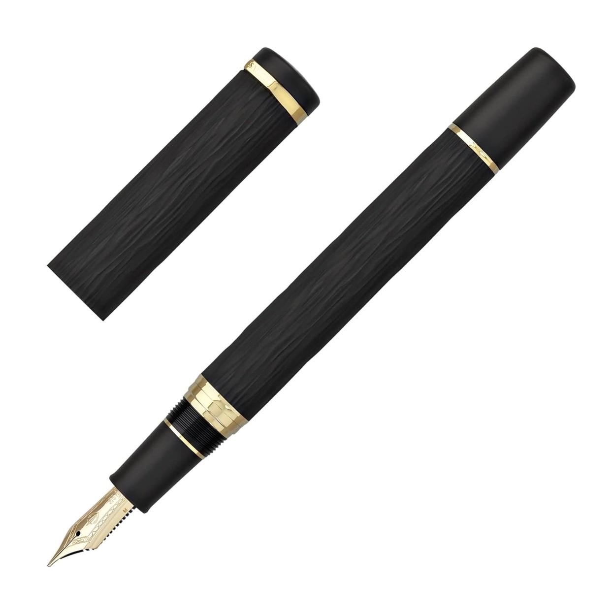 Les instruments d'écriture, PlumeLe stylo plume Ebonite Sculpture Yogazsumi Night Haze exprime l'apparence d'une brume flottant au pied d'une montagne la nuit obtenue grâce à la technique du sablage, qui produit une texture rugueuse et très agréable au toucher. La série Sailor Ebonite Sculpture comprend trois modèles différents sculptés dans du caoutchouc dur d'ébonite naturelle, puis spécialement traités par sablage, ciselage au diamant ou gravure pour obtenir une surface unique et distinctive pour chaque modèle. Ces stylos automatiques comportent également un bouchon de rouleau discret gravé du logo Sailor sur le dessus de l'anneau près du fleuron. Les stylos de la série Ebonite Sculpture s'utilisent avec des cartouches Sailor ou le convertisseur inclus. Plume Or jaune 21 carats de format 1911. Plume exceptionnelle Le coffret de présentation spécialement conçu comprend un flacon de 20 ml d'encre Sailor Studio qui correspond à chaque modèle. Également inclus : chiffon de nettoyage, manuel d'instructions et carte de garantie, ainsi qu'un pack de démarrage de deux cartouches d'encre Sailor et un convertisseur plaqué or. Le stylo plume Ebonite Sculpture Yakaze Night Breeze exprime le vent qui souffle la nuit quand il y a moins de monde dans la rue à travers une gravure profonde avec de belles lignes verticales.900€ 750€TVA