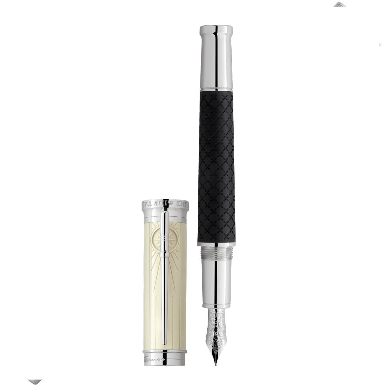 Les instruments d'écriture, RollerLe corps entier du stylo représente différentes scènes de la Divine Comédie. En partant du bas, l'enfer est représenté avec une citation du chant V et une illustration librement inspirée d'un tableau de Gustave Doré. Les protagonistes sont Paolo et Francesca et leur amour l'un pour l'autre. Au centre, une représentation typique du purgatoire, réalisée avec une micro-fusion d'argent, montre les damnés chanceux montant en spirale vers le ciel. Le capuchon est entièrement dédié au Paradis, avec une citation du XXI Canto et une illustration de Béatrice et Dante, également inspirée d’une table Dorée. La boîte sur mesure, avec sa structure en laiton formée de deux statues, un ange et un démon tenant la plume, est une véritable pièce d'exposition. Le socle en acajou contient un flacon d'encre en verre et un livret dédié à la collection. CARACTÉRISTIQUES Type : Stylo roller Couleur : Ivoire Matière : Résine acrylique / Argent Recharge : International roller ou feutre Type de fermeture : Pas de vis Garnitures métalliques : Argent vieilli Édition limitée : N°014/321 MATÉRIAUX Pour la création de cette édition limitée, le corps et le capuchon du stylo sont réalisés en acrylique de couleur ivoire gravé avec la technique du scrimshaw. Les garnitures métalliques, en argent avec un traitement argent vieilli, sont façonnées avec une technique de moulage.4500€ 3750€TVA -