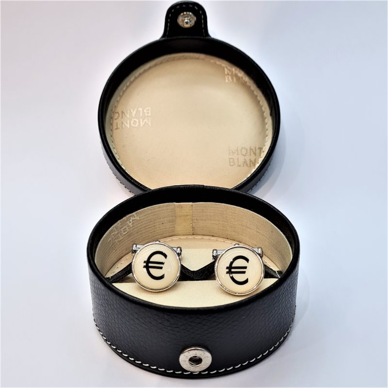 Ces boutons de manchette montblanc célèbre la monnaie « L’Euro ». Forme ronde de couleur crème et noir.