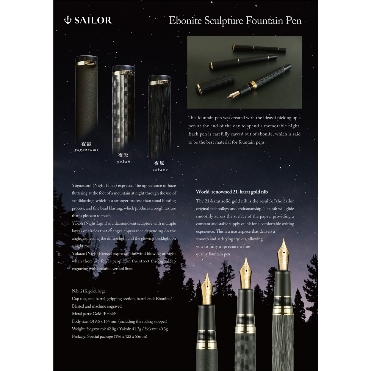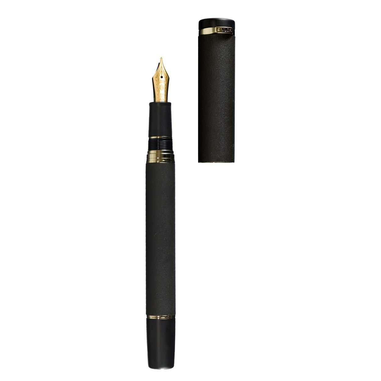 Les stylos de la série Ebonite Sculpture s’utilisent avec des cartouches Sailor ou le convertisseur inclus. Plume Or jaune 21 carats de format 1911. Plume exceptionnelle