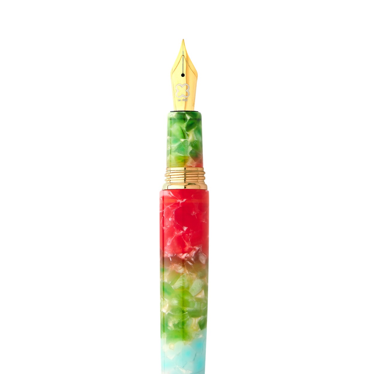 Présentation de Maui. Le dernier Estie de notre collection. S’inspirant des attributs géologiques variés de la célèbre île d’Hawai’i, ce stylo est composé d’un mélange d’acrylique empilé dans des tons vibrants de bleu, vert et rouge. Le premier du genre pour Esterbrook, nous ne pouvions penser à un meilleur enclos – ou lieu – pour représenter le charme énigmatique de l’île.