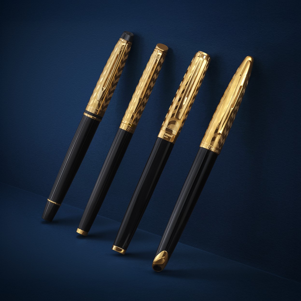 Le grand opéra inspire les spectateurs depuis des siècles ; c’est maintenant au tour de la collection exclusive Waterman Opera de s’y intéresser. L’élégante silhouette élancée de l’expert et le noir profond de son corps laqué s’harmonisent parfaitement avec le capuchon doré orné d’un motif gravé, reflet de la splendeur artistique de l’opéra. La pointe rollerball, d’une conception ingénieuse, allie la tradition de l’encre liquide au confort et à la praticité, et se marie au clip à deux branches doré, signature de la marque, pour souligner l’élégance raffinée du stylo. Chaque stylo est méticuleusement fabriqué et assemblé à la main en France, témoignant du savoir-faire français de Waterman.