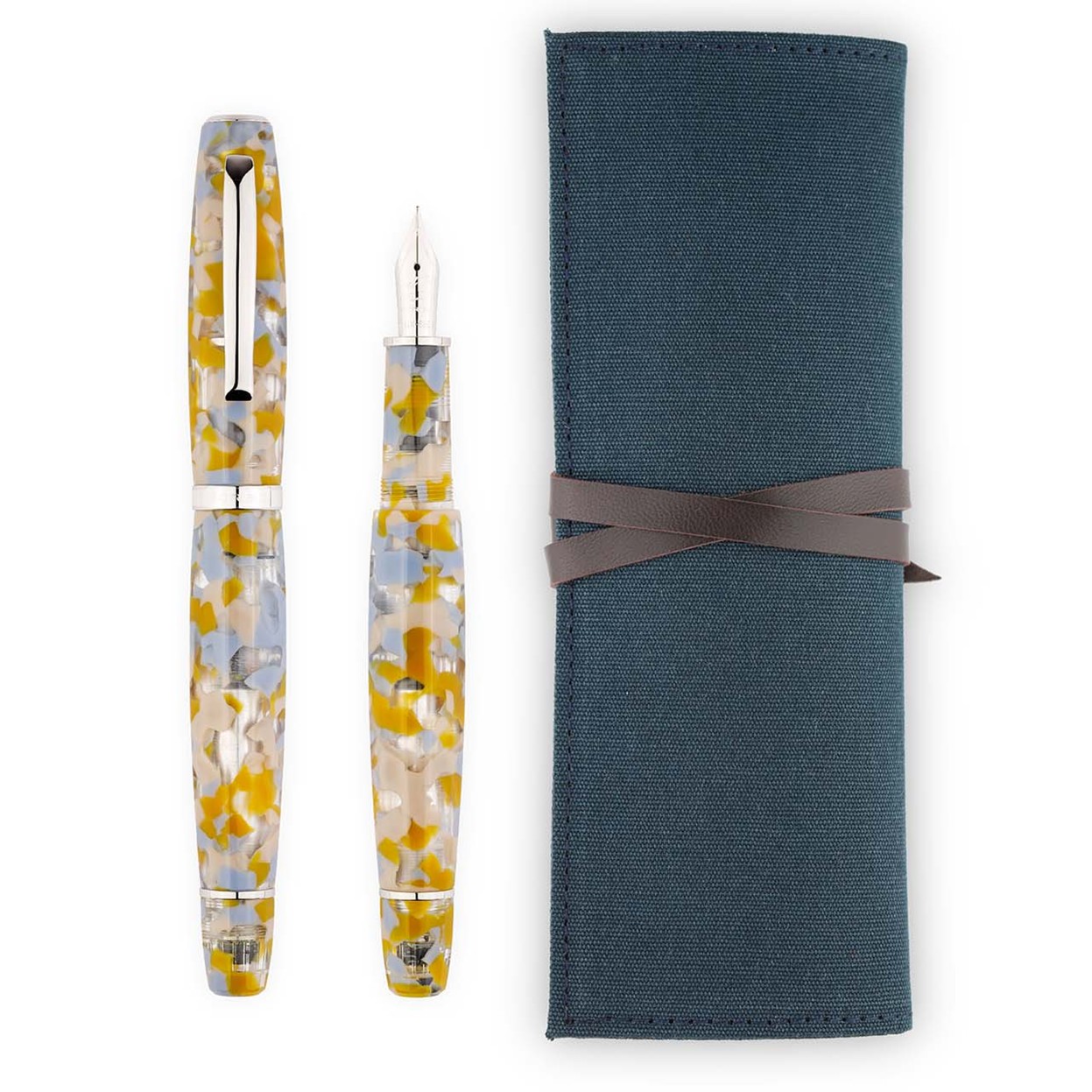 Fabriquée à la main en 150 exemplaires, la collection FEEL Sale di Cervia présente des tons gris/bleu et ocre semi-transparents, enrichis de détails à la finition platine, inspirés par la lumière qui caresse les marais salants.