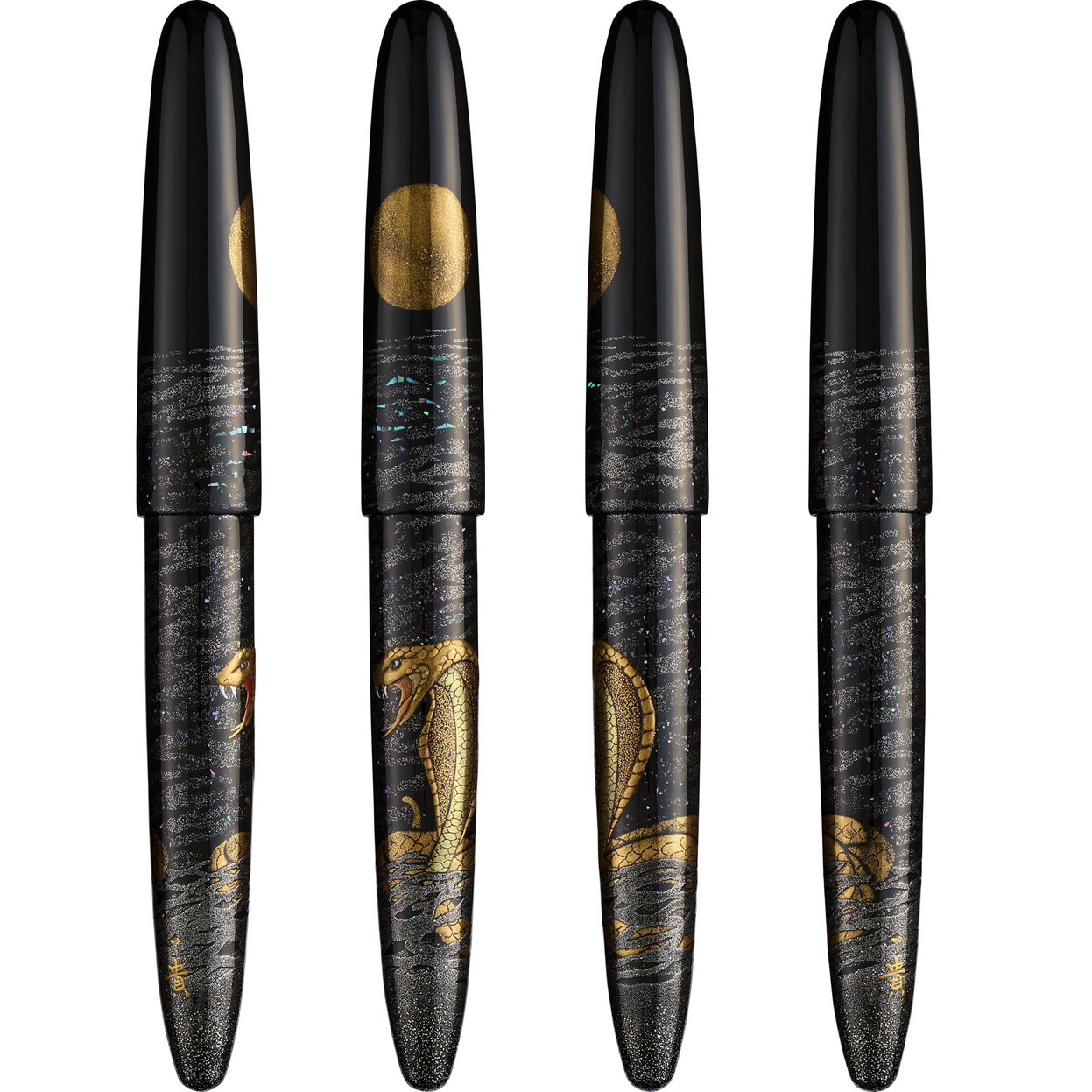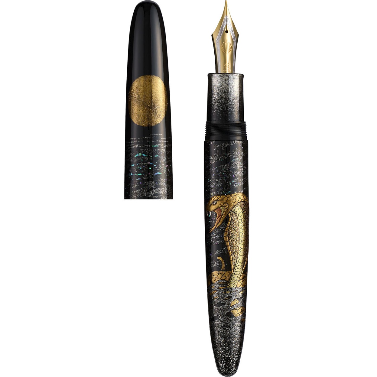 La décoration maki-e complexe du stylo capture l’allure sinueuse d’un cobra, tandis que de délicates touches d’or et de nacre reflètent l’éclat éthéré du clair de lune.
