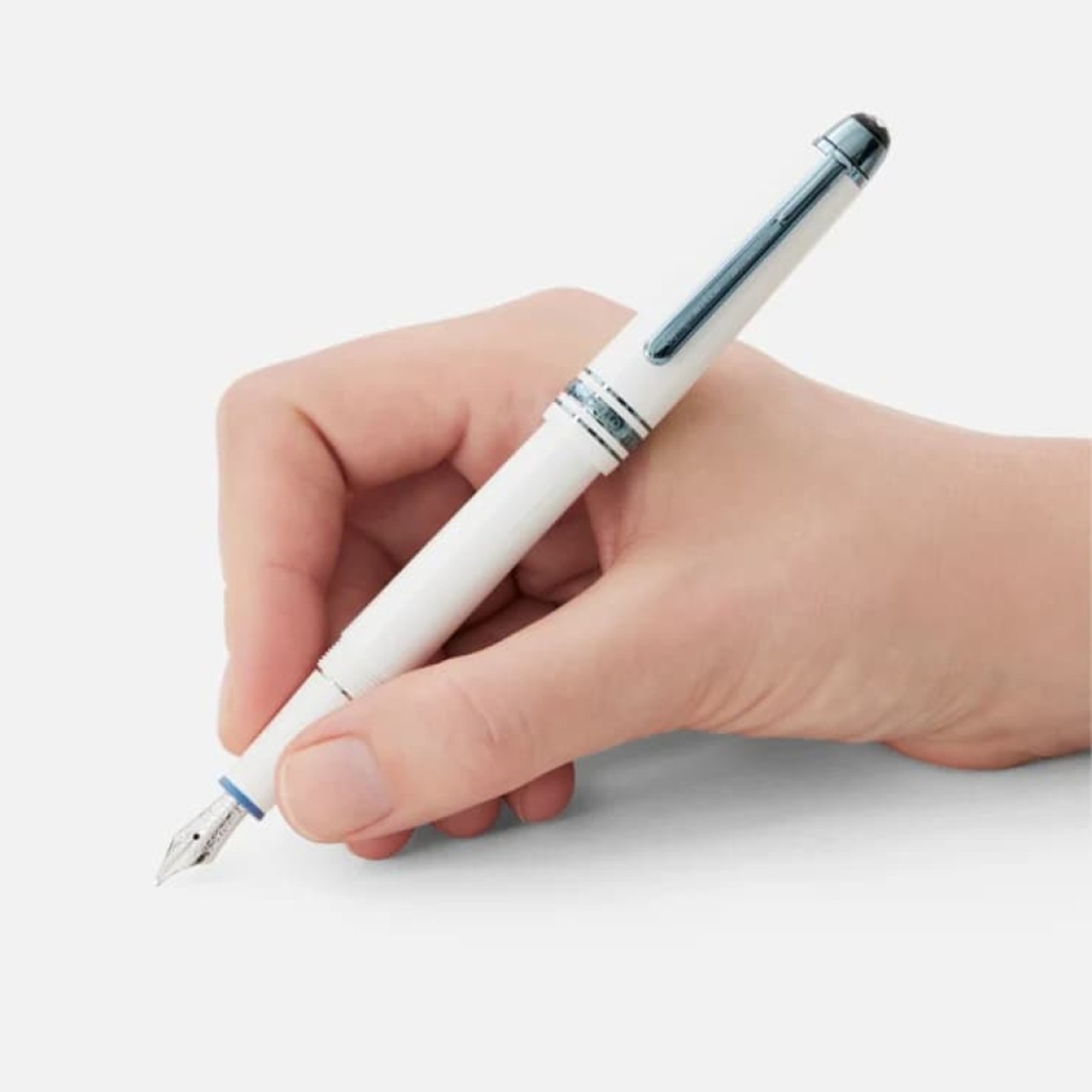 Inspiré par les glaciers mystiques du Mont Blanc, le stylo plume Meisterstück Glacier Classique avec White Precious Resin représente notre dévouement aux produits de haute qualité, notre attitude envers l’exploration et notre esprit d’aventure. Cet instrument d’écriture est rehaussé de détails en métal PVD bleu et comporte une plume en or 14K 585 plaquée rhodium fabriquée à la main qui représente le « dragon » de la Mer de Glace au sommet du Mont Blanc.