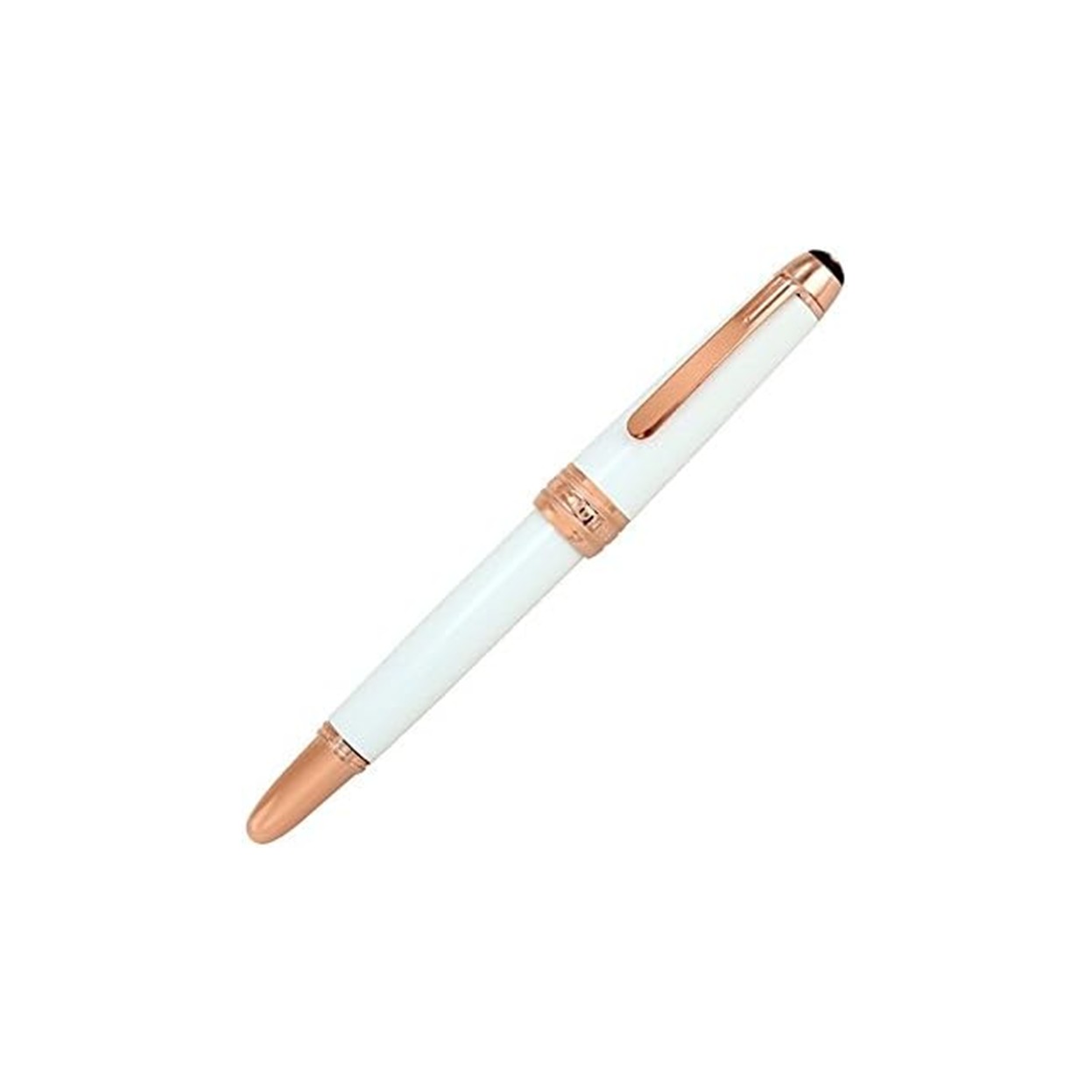 Le clip, l’anneau et le cône de maintien du stylo sont en métal plaqué or rose. Des motifs de montagne y sont délicatement gravés sur la section. Ce stylo est l’une des versions les plus remarquables de la marque Montblanc. Fabriqué en Allemagne, il est doté d’un mécanisme d’ouverture du capuchon vissé.