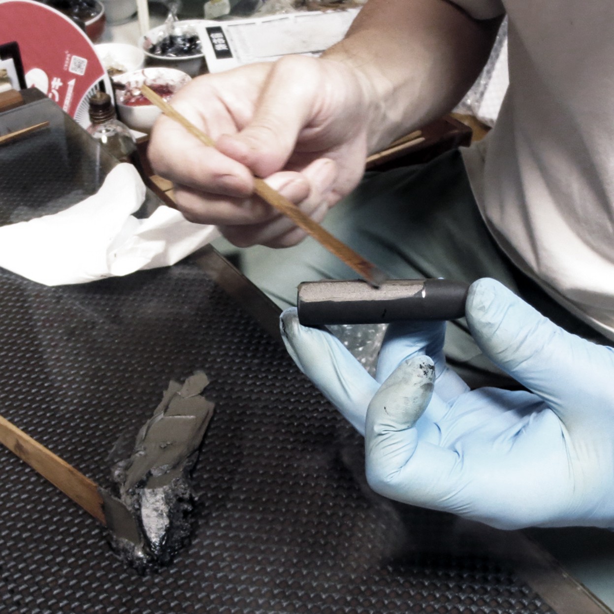 Le capuchon est fabriqué selon la technique de laquage Aizu-nuri, une technique de laquage traditionnelle japonaise qui trouve ses racines pendant la période Tensho vers 1590. Il présente une striation unique qui traverse verticalement le capuchon du stylo pour donner l’impression d’être plus long tout en donnant une objectif plus pratique en permettant une préhension facile pour le bouchage et le débouchage