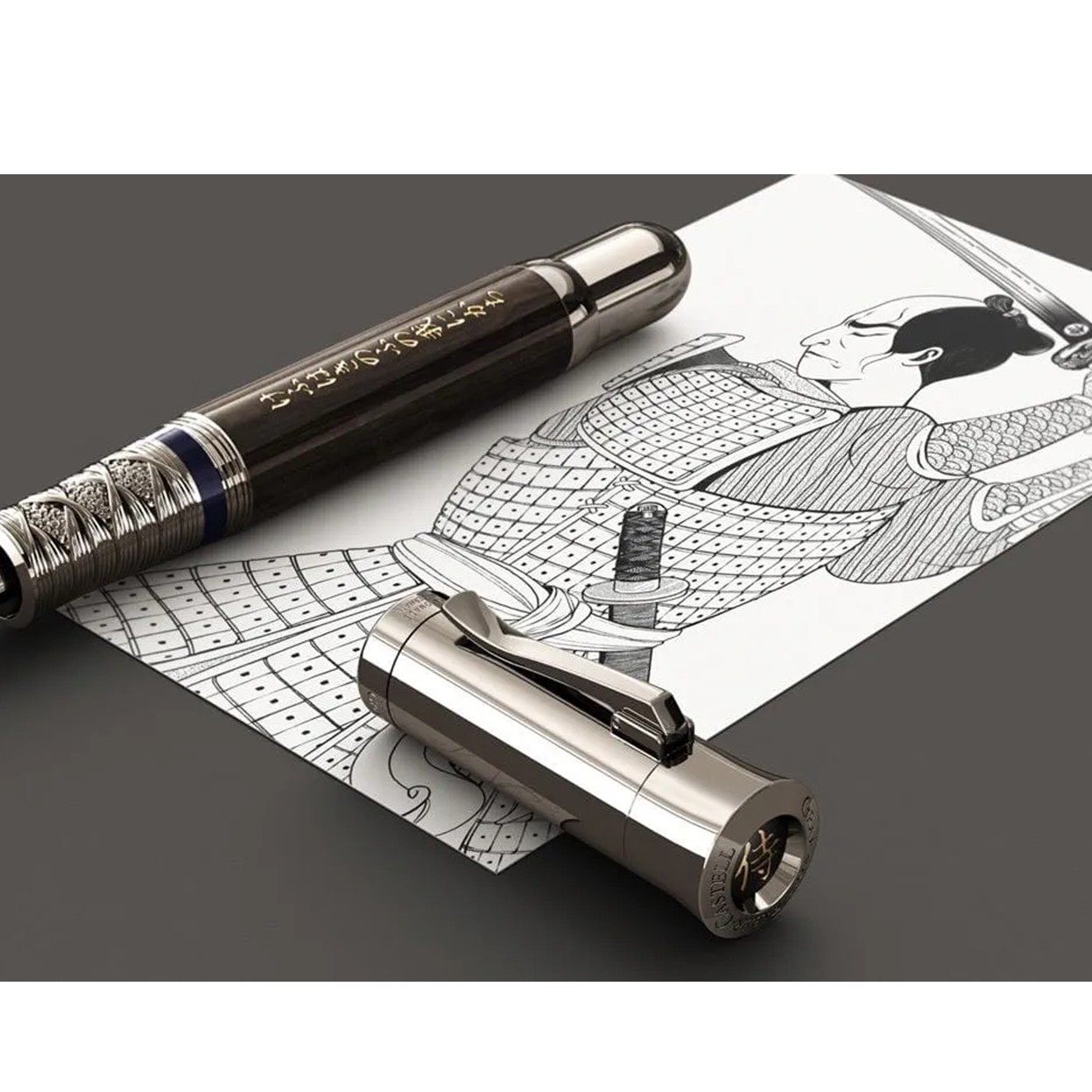 Les samouraïs étaient guidés par de nobles valeurs, le courage et l’autodiscipline. Le Stylo de l’Année 2019 s’inspire de cette époque, qui a duré plusieurs siècles, de l’esthétique de leurs armes et de leur état d’esprit. Le corps en métal peint en noir de la Black Edition, avec son plaquage décoratif en or 24 carats évoque l’armure à l’ornementation raffinée fabriquée à partir de plaques individuelles. Le corps en bois de magnolia lasuré est un hommage aux longs sabres des samouraïs (katana). Le manche et le fourreau étaient taillés dans du bois de magnolia non traité.
