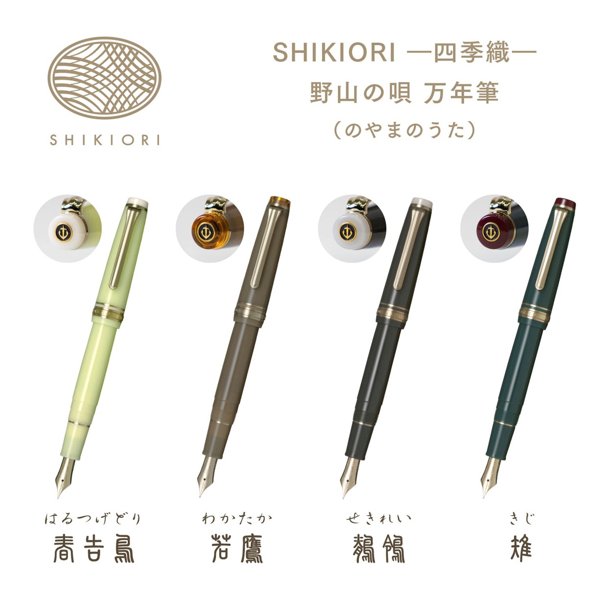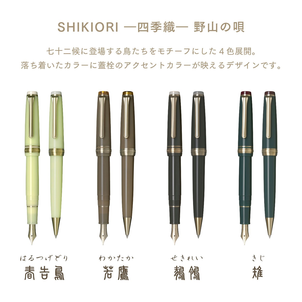 Inspirée par les micro-saisons ancestrales du Japon, la collection Shikiori « Noyama-no-Uta » (Chants des montagnes) de Sailor célèbre la beauté silencieuse des transformations de la nature. Le modèle Waka-taka , qui signifie « Apprenti faucon », évoque l’esprit des jeunes faucons prenant leur envol.