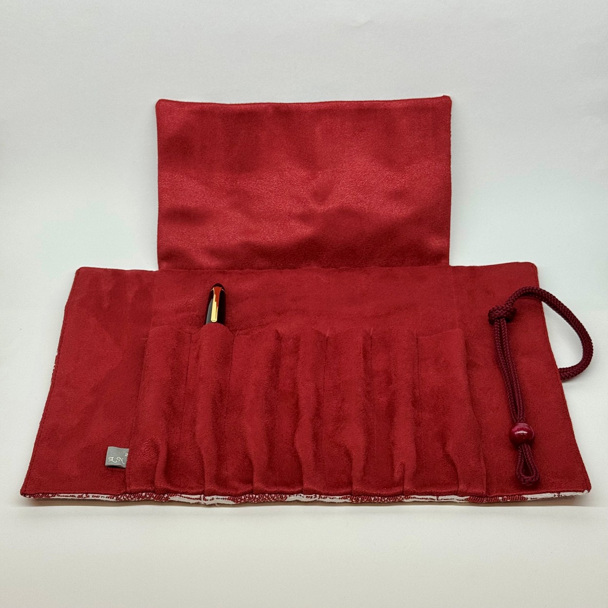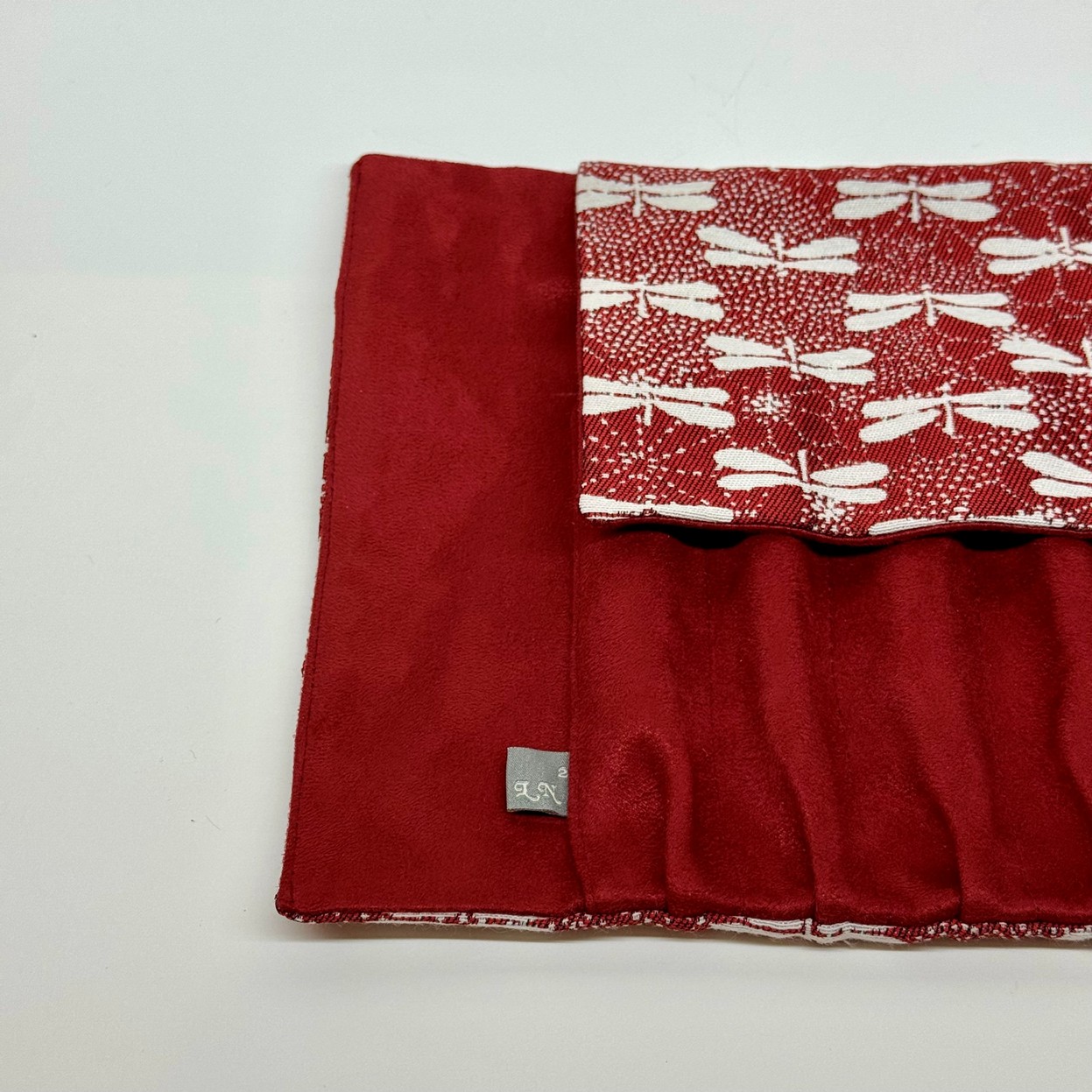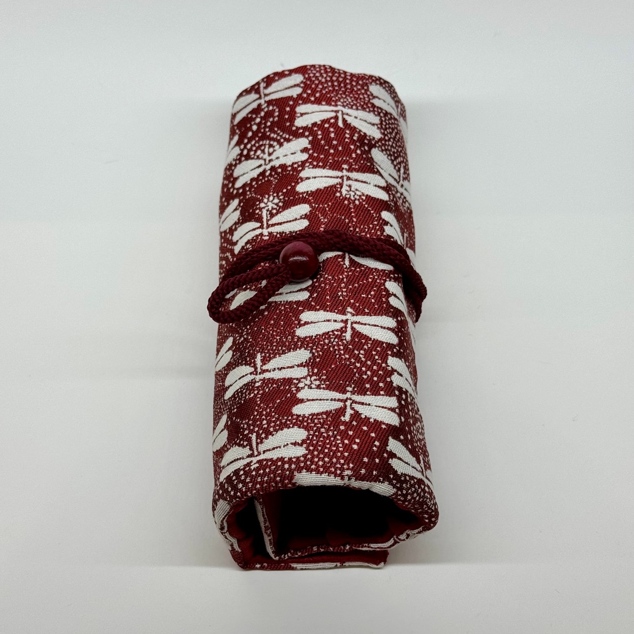 Roll à stylos pour 7 stylos « Motif Libellules sur fond rouge »