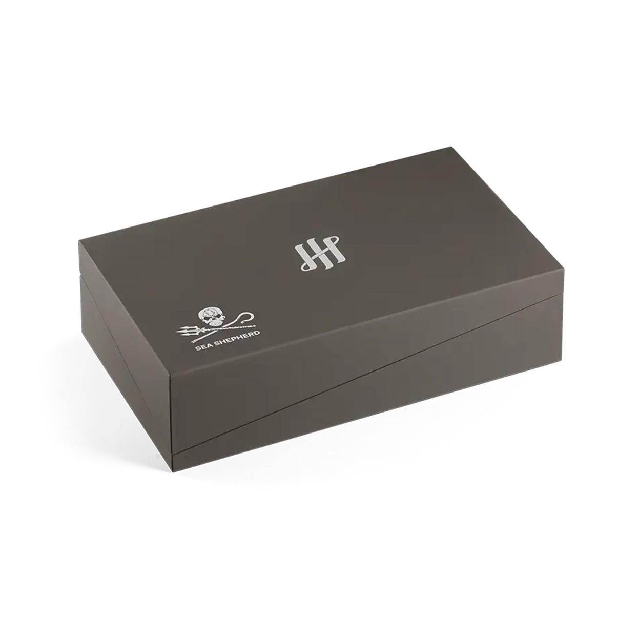 Une nouvelle édition limitée émerge des eaux de la Méditerranée pour transmettre un message de durabilité et de respect pour la vie marine. Réalisée à la main en argent sterling et en résine issue de la récupération et du recyclage des filets fantômes – récupérés par les bénévoles de Sea Shepherd – et régénérée par iMilani à travers un processus certifié PSV, Sea Shepherd : Caretta caretta est une déclaration d’amour à la mer qui devient un geste concret pour sa protection.