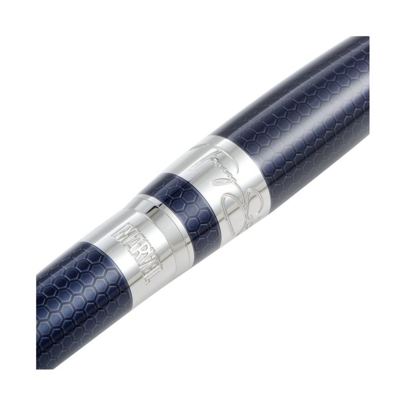 Déclinaison d’un modèle Line D, ce stylo reprend le délicat motif nid d’abeille de la collection. Le logo S.T. Dupont est gravé sur le corps du stylo tandis que la signature Tony Stark en orne le capuchon. Une version plume est disponible sur demande.