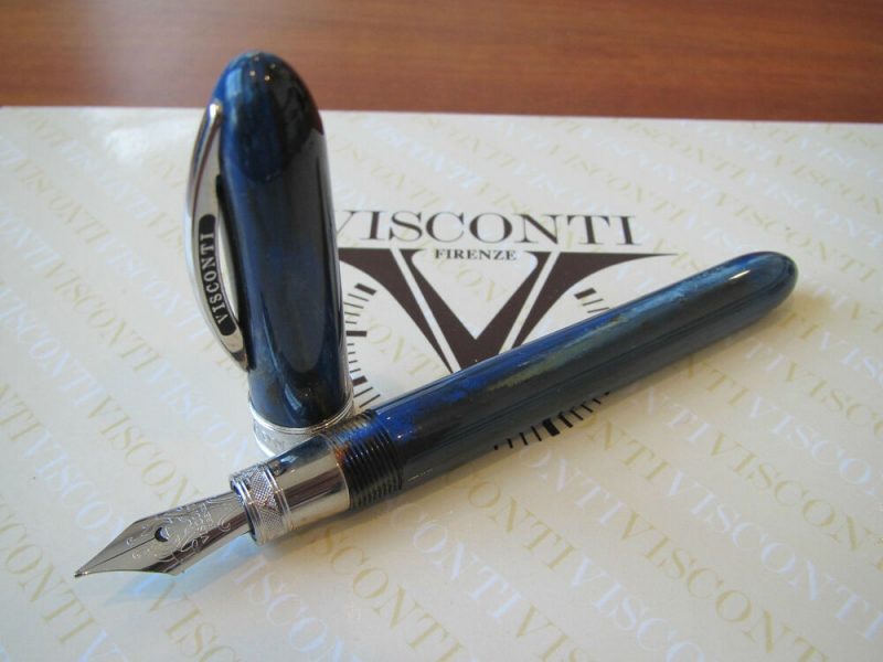 Ce magnifique stylo plume Visconti Van Gogh Maxi, fabriqué à Florence en Italie. La série Van Gogh présente des instruments d’écriture produits grâce aux recherches approfondies de Visconti sur un nouveau procédé de fabrication appelé « moule de presse ». Développé par Visconti, ce nouveau processus produit de nouvelles couleurs fantastiques obtenues à partir de résines naturelles et de composants végétaux. Ce mélange des deux matériaux donne de la profondeur aux couleurs et crée un effet translucide. Les couleurs varient d’une pièce à l’autre, rappelant le magnifique tableau impressionniste du genre Van Gogh. Ce stylo, qui est translucide, est d’un beau bleu profond aux couleurs accentuées dans les tons de blanc et d’or – le bleu océan de Visconti. Le capuchon porte le bandeau large à la signature de Visconti. La plume est une belle plume Visconti en or 14 carats de belle taille. Van Gogh est livré avec un convertisseur de piston, ou le convertisseur fourni peut être retiré et le stylo accepte les cartouches d’encre.